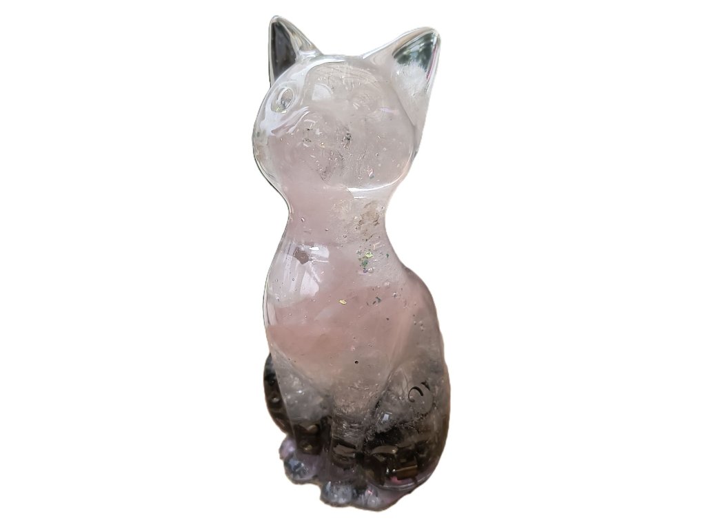 🐾 Orgonitová kočka s růženínem a křišťálem – energie lásky, harmonie a ochrany domova