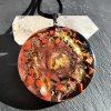 Složení: Zářivý Citrín (sluneční kámen) ve středu, doplněný zemitým Červeným jaspisem a mosaznými třískami pro teplý, zlatavý lesk.