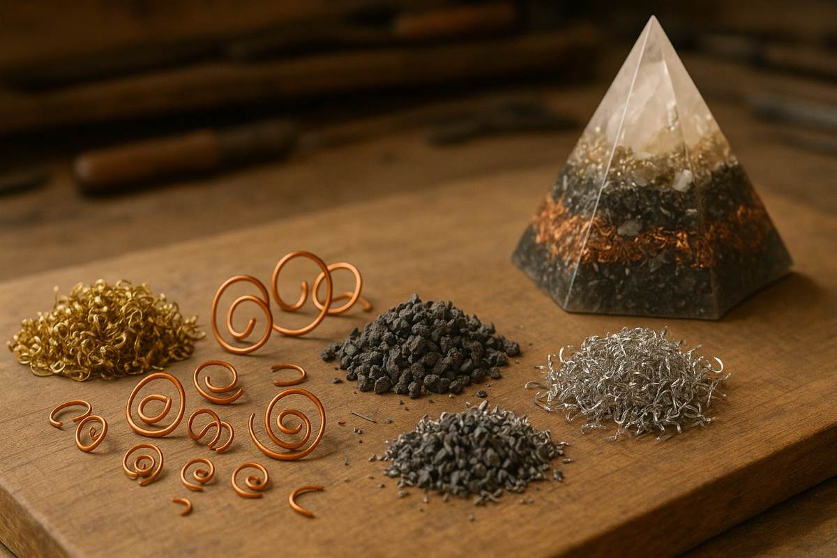 Každý kov má trochu jiné vlastnosti – jak fyzikální, tak i symbolické. Tvůrci orgonitů si proto často vybírají podle toho, co chtějí výsledným kusem vyjádřit.