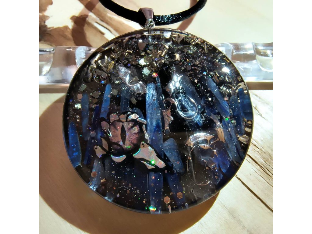 Drak harmonie – orgonitový přívěsek s aqua aurou, magnezitem a šungitem