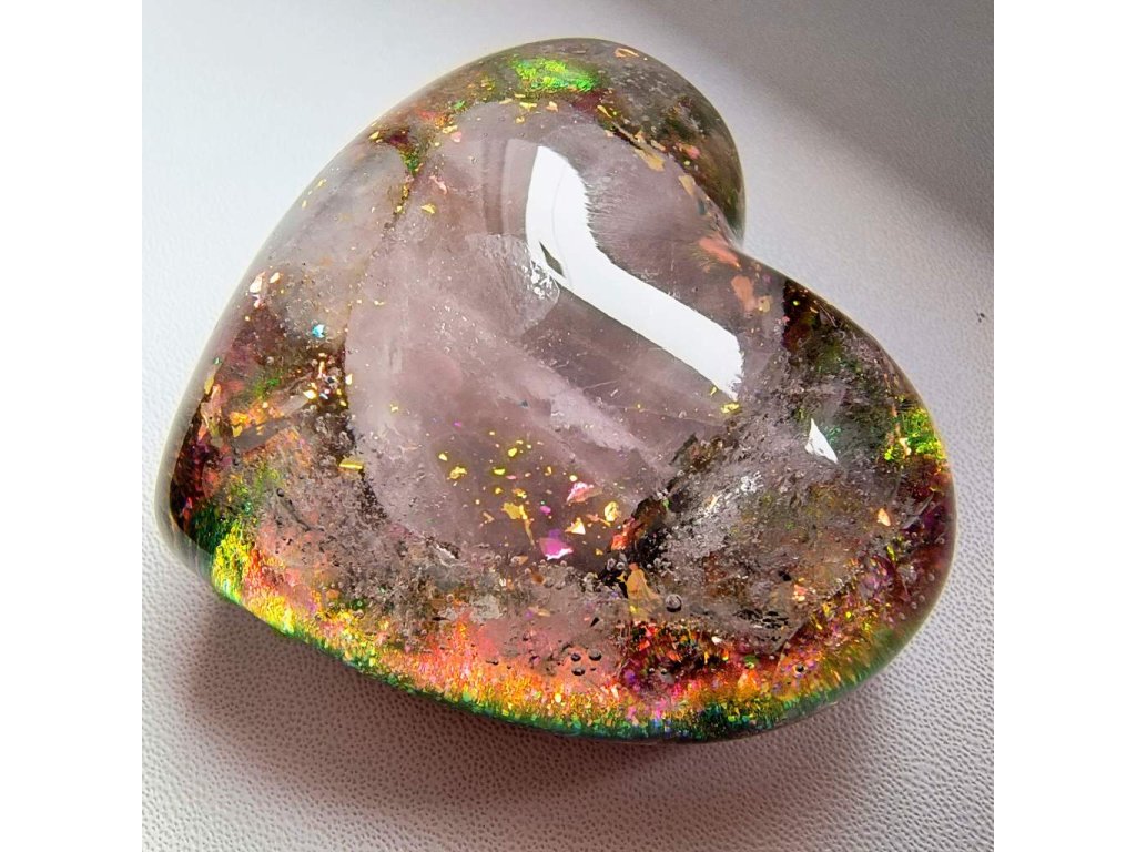 Ručně lité orgonitové srdce ve střední velikosti (5 x 4,5 cm). Energetický zářič do dlaně i do prostoru. Každý kus obsahuje základní orgonitovou matici s Křišťálem, ochranný Šungit, měděnou spirálu a hlavní drahý kámen dle vašeho výběru. Česká ruční výroba.