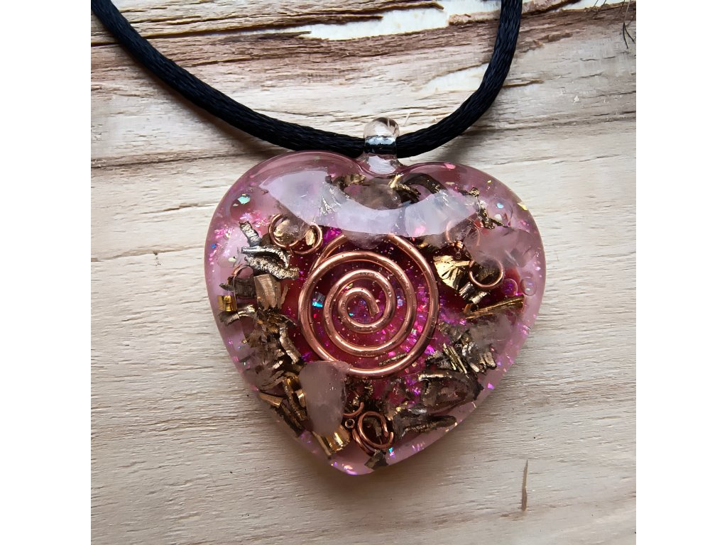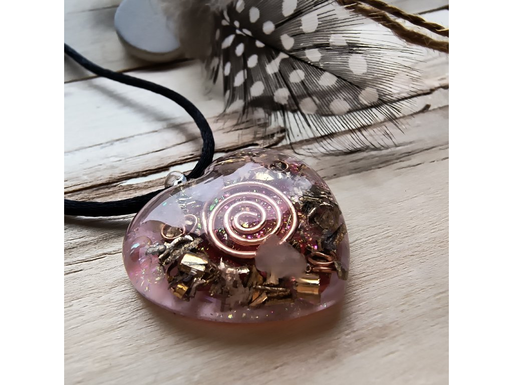 Tento ručně vyráběný orgonitový přívěsek ve tvaru srdce propojuje léčivou sílu Růženínu s očistným působením Křišťálu. Jemný, ale silný šperk, který slouží jako ochranný amulet pro srdce, vztahy i sebelásku.