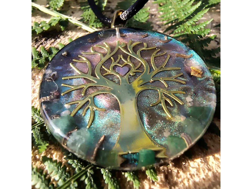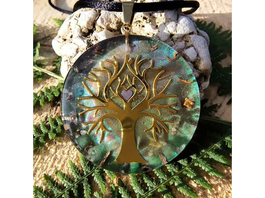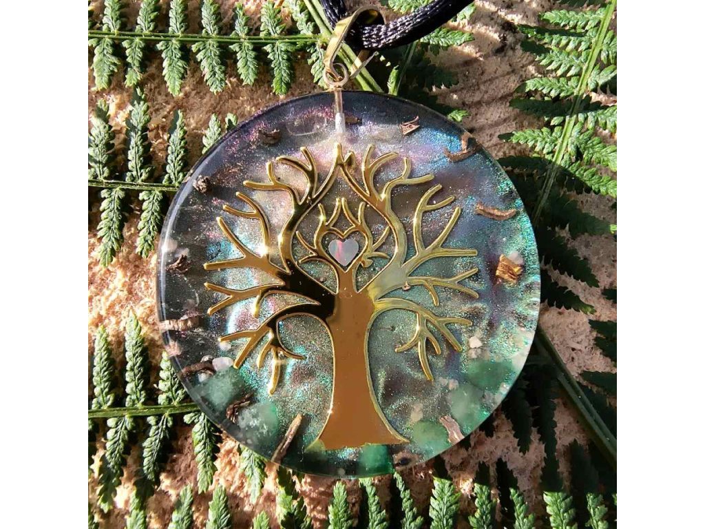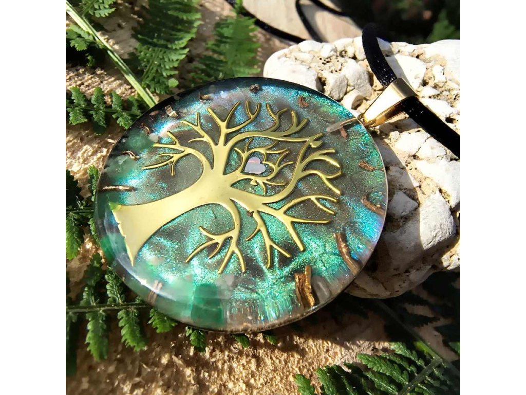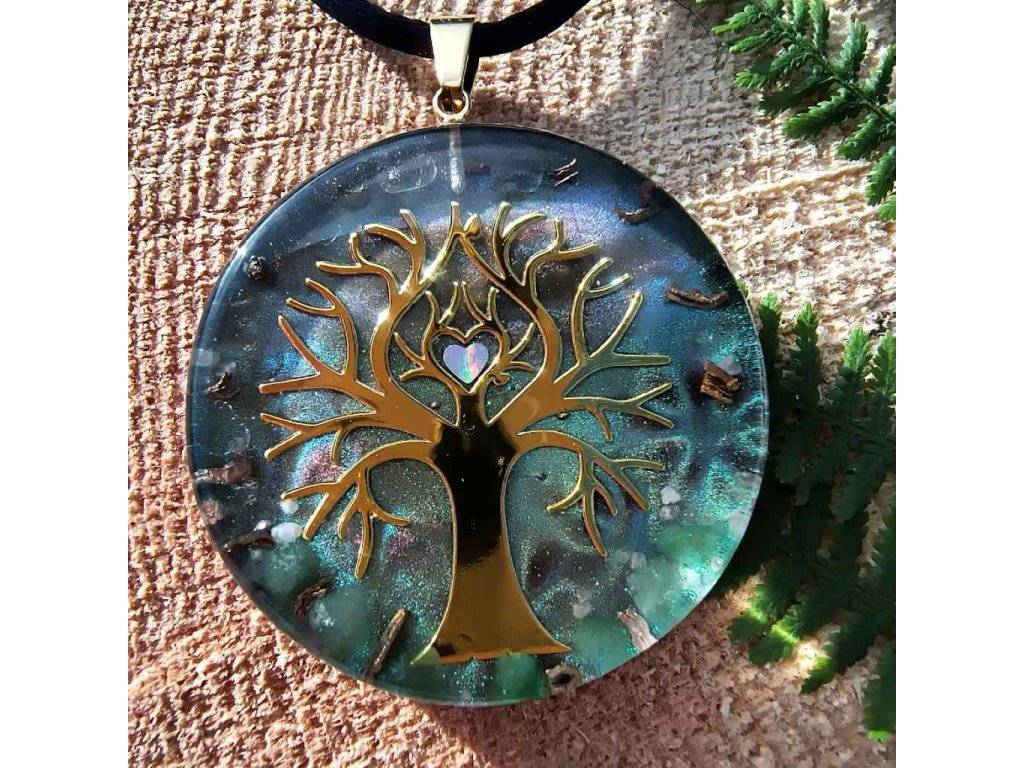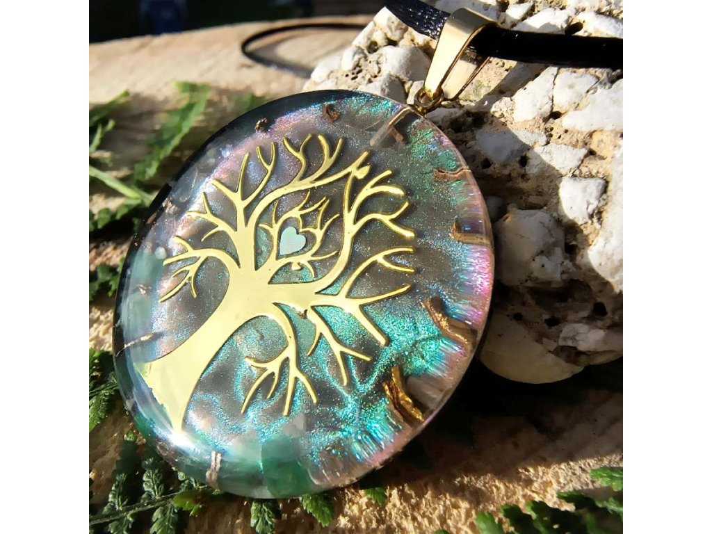 Tento orgonitový přívěsek spojuje sílu přírody, tradiční symboliku a jemnou krásu ruční práce. Dominantou je zlatý Strom života, který od pradávna představuje propojení mezi nebem a zemí, růst, stabilitu a životní energii.