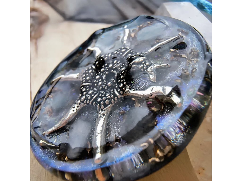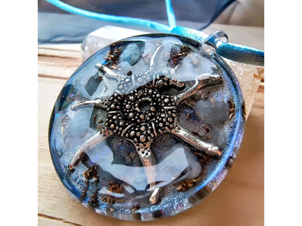 Orgonitový přívěsek je vytvořen s důrazem na symboliku vody, čistoty a klidu. V jeho srdci najdete bižuterní kovový přívěsek - pradávná mořská hvězdice a Akvamarín, jemně modrý drahokam, který je odpradávna spojován s oceánem, plynutím a hlasem duše.