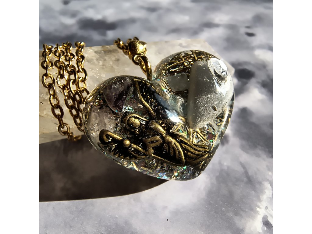 Ručně vyráběný orgonitový přívěsek nebeské ochrany, klidu a lásky.